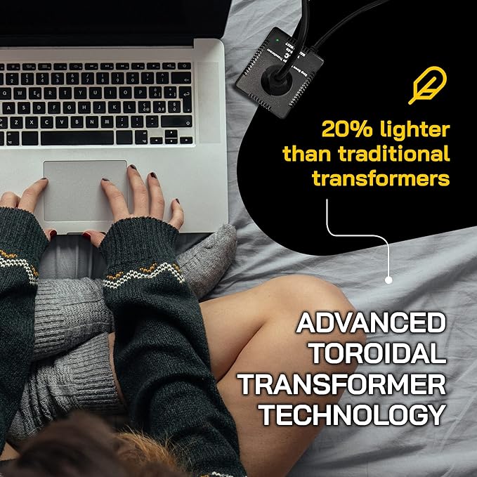 - This voltage converter has new efficient toroidal transformer technology - provides higher efficiency. It is 20% lighter than traditional converters. Weight: 1.14 lbs, Dimensions: 4" x 3.50" x 2"